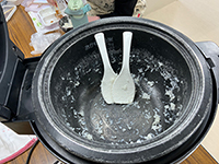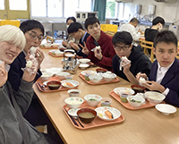 みんなとても喜んで食べてくれました、また給食を食べない通学生や職員には別日に炊飯してふるまわせていただきました。ご飯を盛る作業をした生徒達から、「自分が用意したご飯を食べてもらえる嬉しさが初めてわかった」などの食育の観点の感想も出てきました。